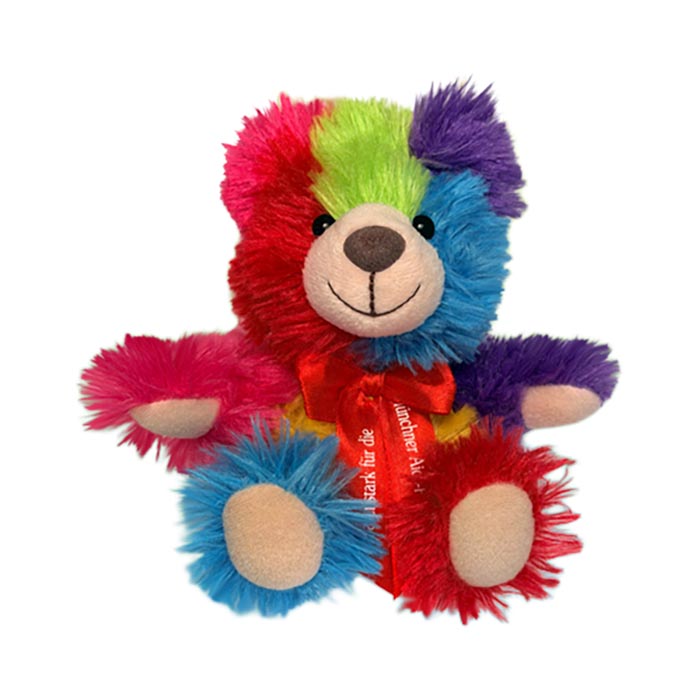 Dieses Jahr ganz im Regenbogen-Design, immer weich und kuschelig. Der Kaufpreis kommt direkt der Münchner Aids-Hilfe zu Gute und fließt in Präventions- und Hilfsprojekte. Mit einem Kauf unterstützt Du die Arbeit der Münchner Aids-Hilfe e.V. und zeigst gleichzeitig Solidarität und soziales Engagement. Mittlerweile hilft der Teddy in über 100 Städten in Europa bei der Spendengewinnung.