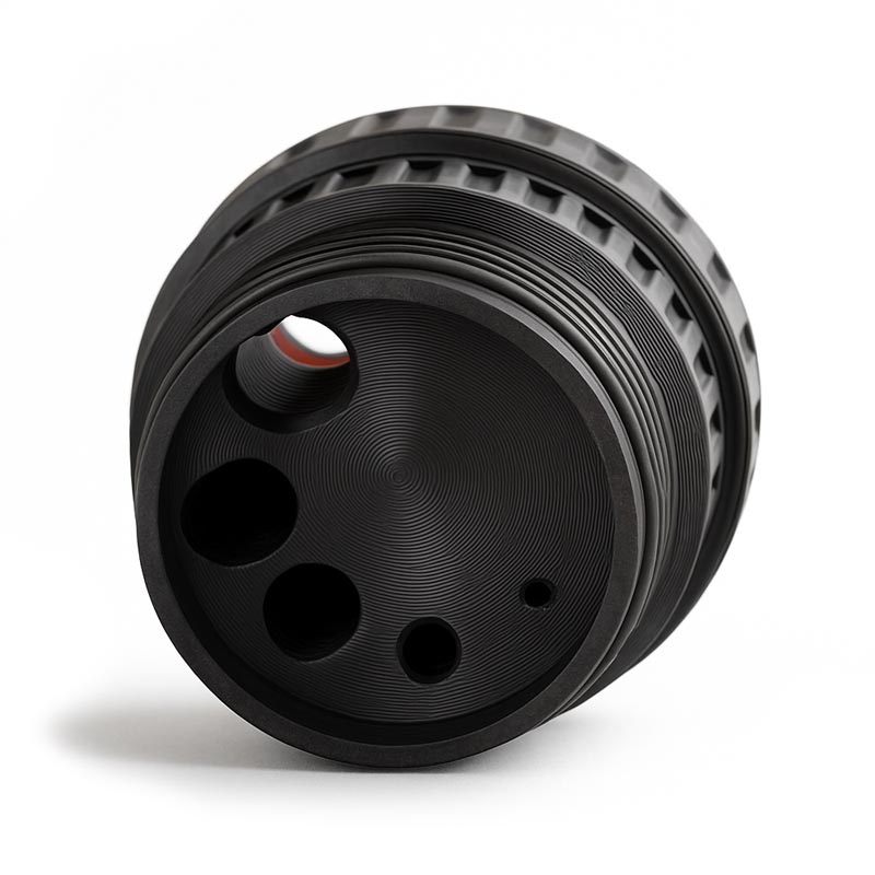 Dieses Kontrollstück ermöglicht es, den Luftstrom schrittweise zu regulieren. Mit jeder sanften Drehbewegung rastet der Mechanismus fühlbar ein – Klick für Klick lässt sich exakt verfolgen, wie weit die Öffnung geschlossen wird. Ein besonderes Detail bildet das rot-schwarze Farbspiel im Inneren, das die Veränderung der Luftzufuhr visuell noch deutlicher macht und eine präzise Kontrolle erlaubt.