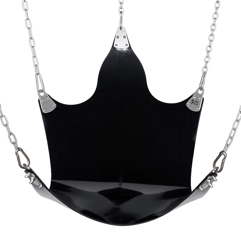 Sling aus einem unverwüstlichen Spezialgummi mit zwei Kevlareinlagen, angenehmen Geruch und hohem Grip. Einzigartig ist auch die Ausführung der fünf Aufhängungen. Das Gummi ist in Edelstahlbeschlägen durch Edelstahlschrauben festgeklemmt, dadurch ist ein Ausreißen nahezu unmöglich. Die Reißgrenze liegt bei mehreren Tonnen, der Hersteller nennt eine dynamische Traglast von 400 kg. Die Form des Slings ist anatomisch angepasst und alle Kanten sind komfortabel abgerundet.