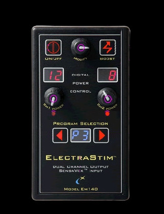 Digital, microprocessor controlled dual channel electro sex device with exciting stimulation effects, modify control, boost feature and SensaVox audio input. You have full control of the power level of each channel separately.