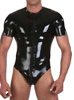 Black latex body with short sleeves, zipper from top to crotch, thickness of material 0,35 mm