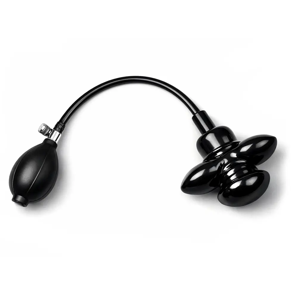 Black alar gag (width 12 cm), comes with hand pump and rubber hose (length 55 cm) with bleed valve